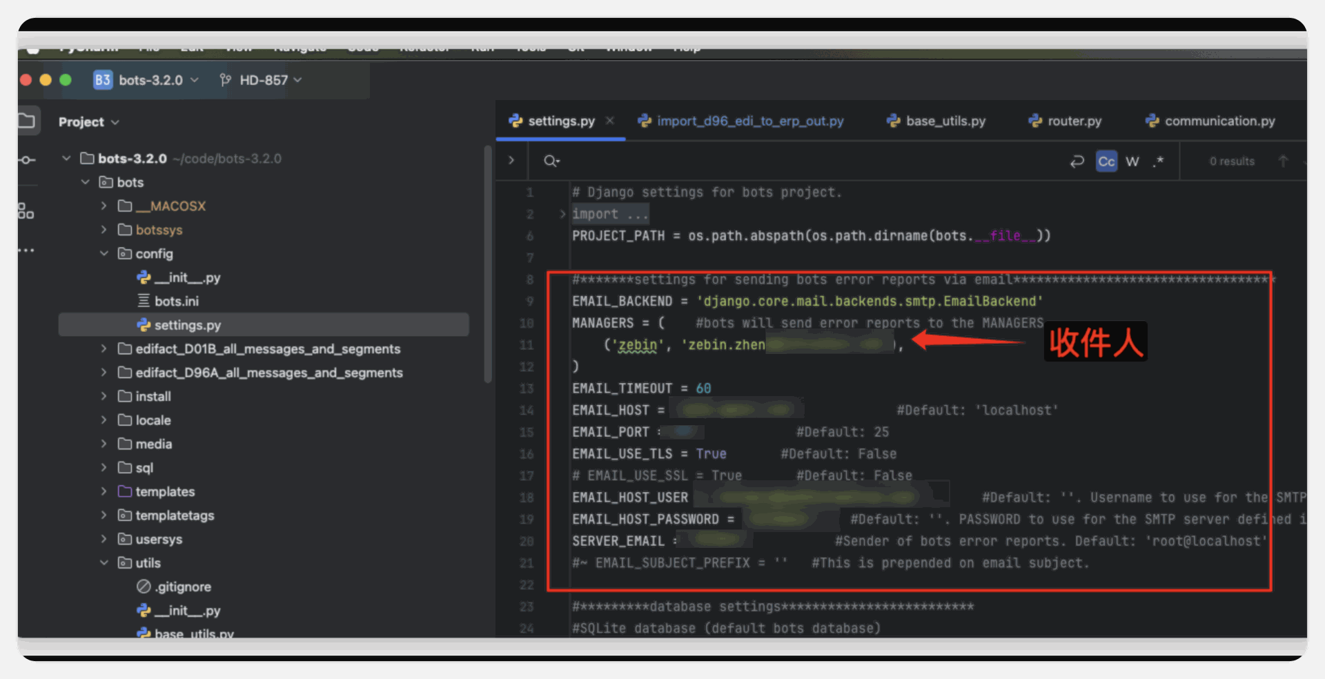 在bots/config/settings 中配置