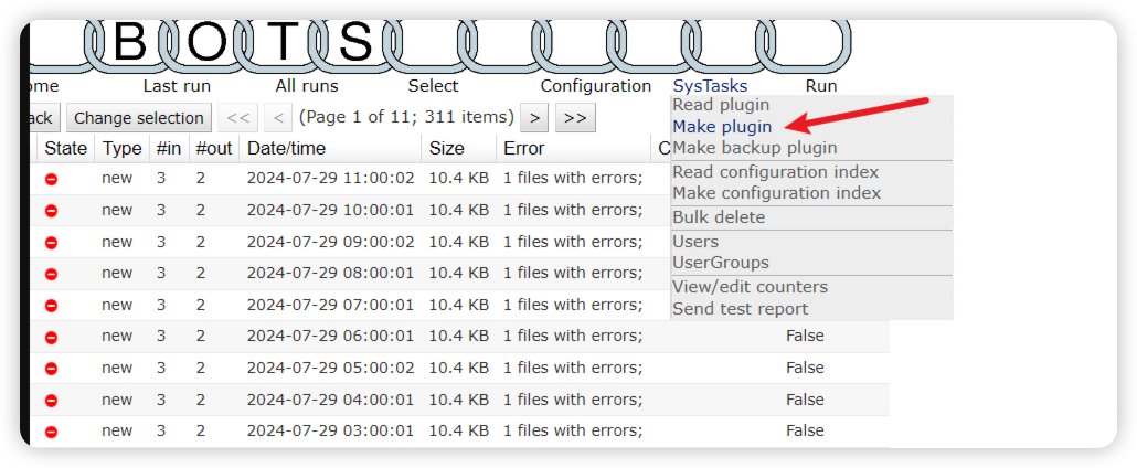 - 日志:bots/botssys/logging/jobqueue.log