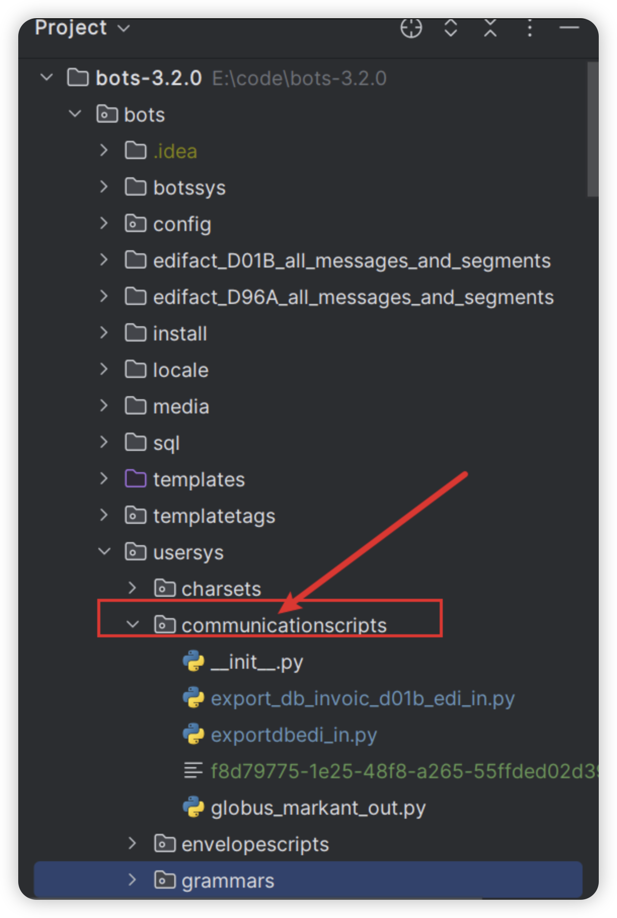 - 进入bots的源码文件,找到usersys