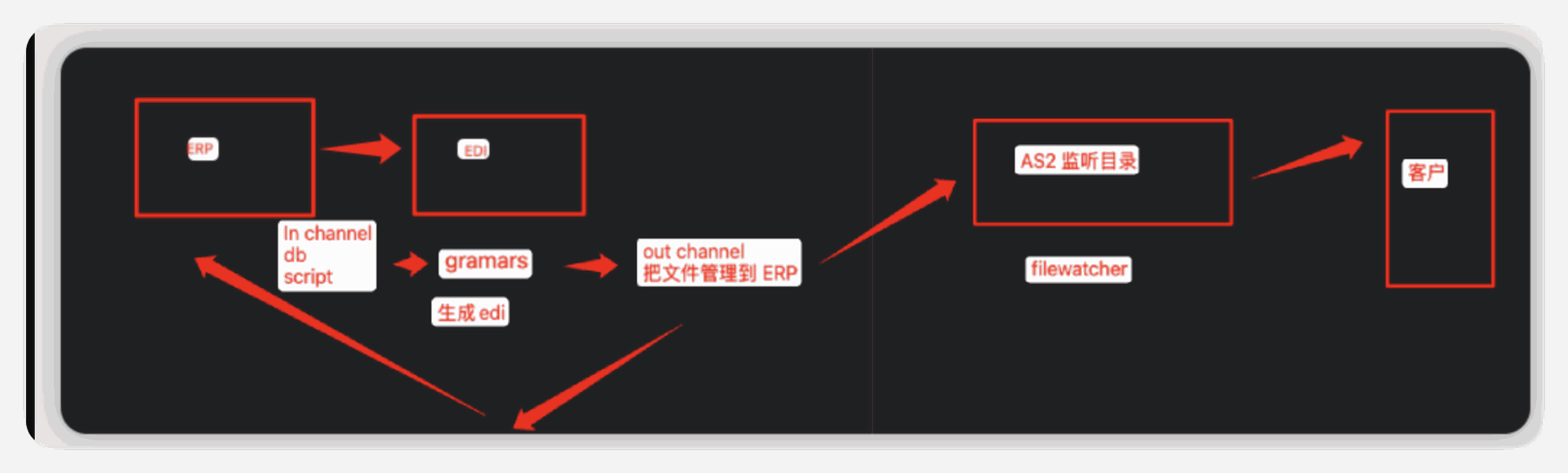 - EDI 服务器监听到指定目录有变化,启动解析流程