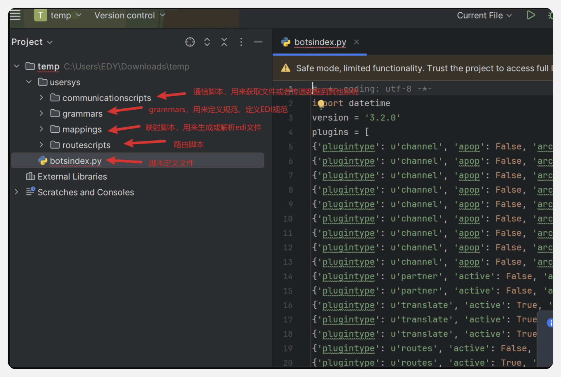 - 我们使用 bots-edi 进行 EDI 处理时,需要通过脚本实现