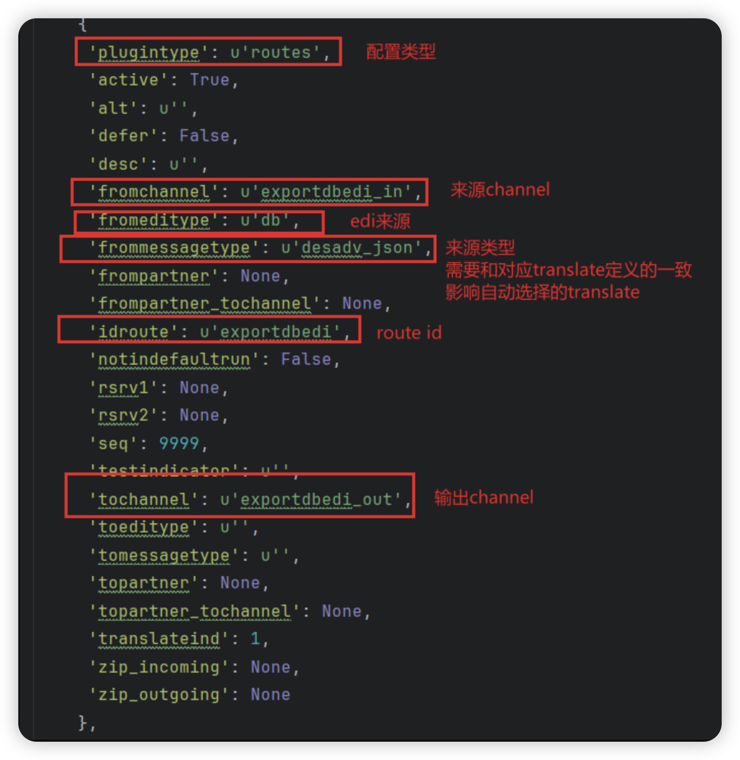 - 导入成功后,可以在route、channel、translate中查看相关信息