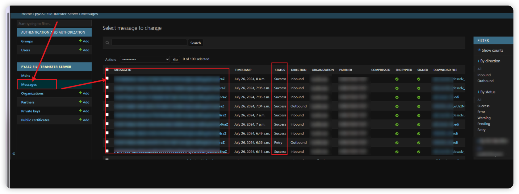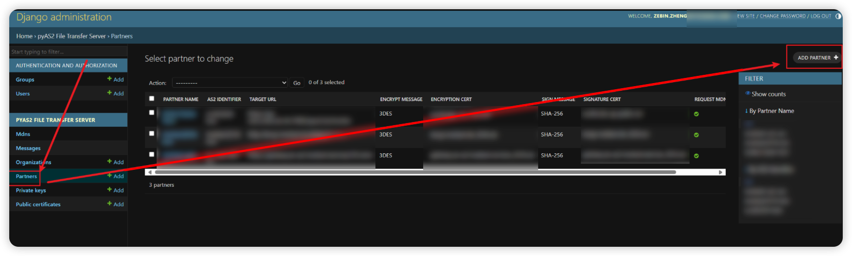 参考django-pyas2 扩展实现监控功能扩展