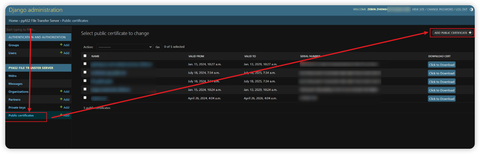 AS2 通信需要验证身份,所以我们应该在服务器中提前配置好