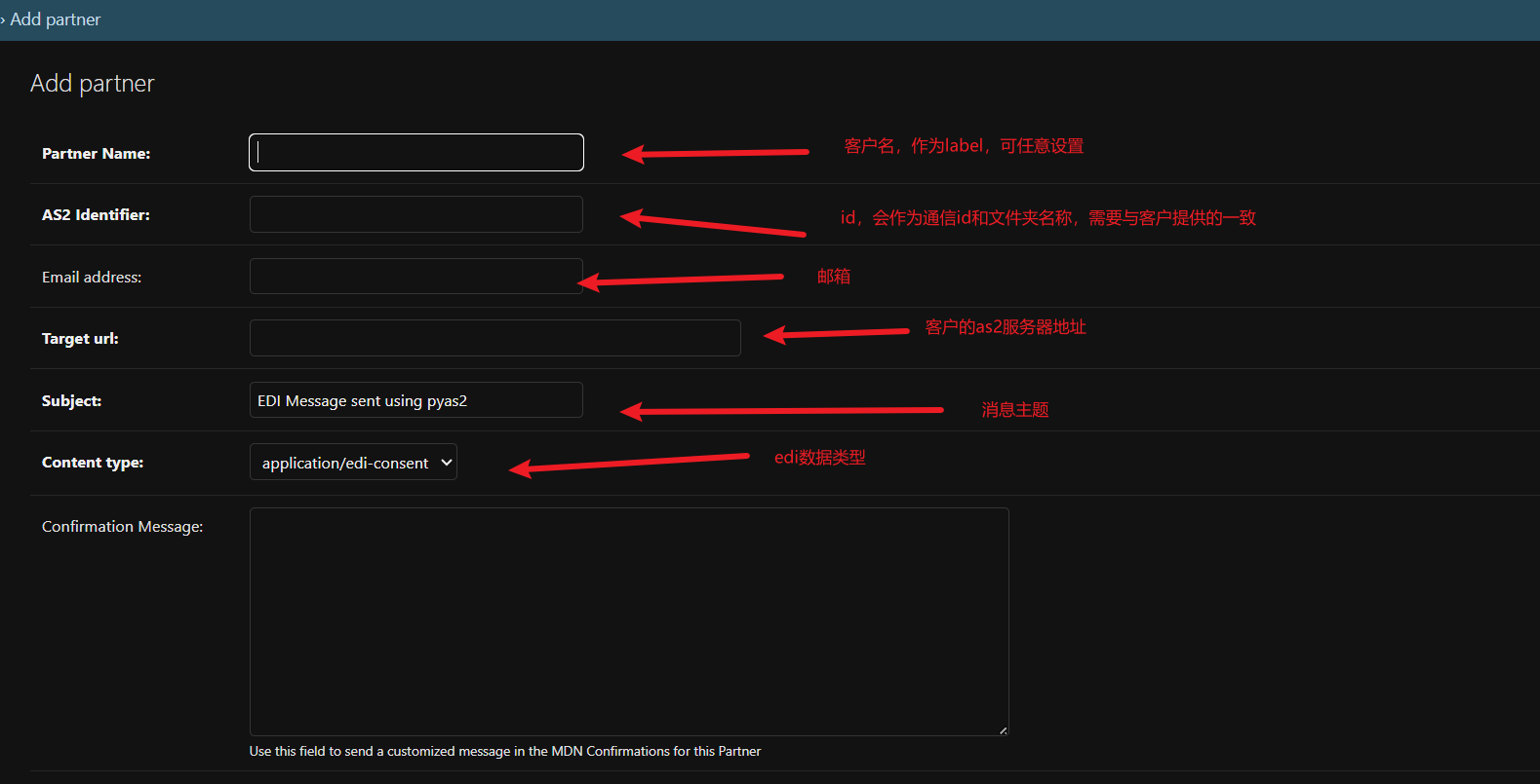 2. 客户信息(as2-id、URL、公钥、证书)